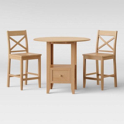 It features the double drop leaf bistro table and two classic chairs with padded seats.